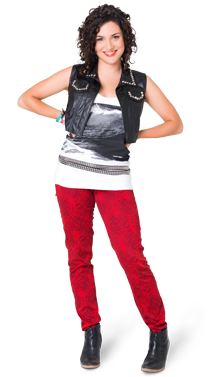 Jeśli chcesz ubrać się tak jak Naty na powyższym zdjęciu zastosuj się do tych kilku kroków. Załóż kolorowe spodnie (najlepiej czerwone), białą koszulkę z czarnym nadrukiem, którą przewiążesz jakimś pasującym paskiem, oraz najlepiej jeśli dodasz do tego skórzaną kamizelkę, choć nie musisz. Efekt bez niej powinien być równie zadowalający. Jeśli chcesz możesz dodać kilka bransoletek! I gotowe!